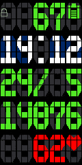 - The Battery is represented by the Circles below the hours and minutes.